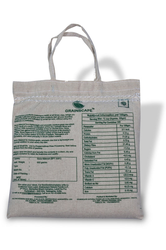 Grainscape Premium Sona Masoori Rice 900 gm. Bag - Naturally Harvested