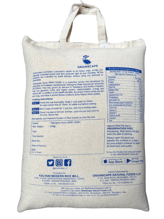 Grainscape Premium Telangana Sona Rice 4.75 kg. Bag - Naturally Harvested